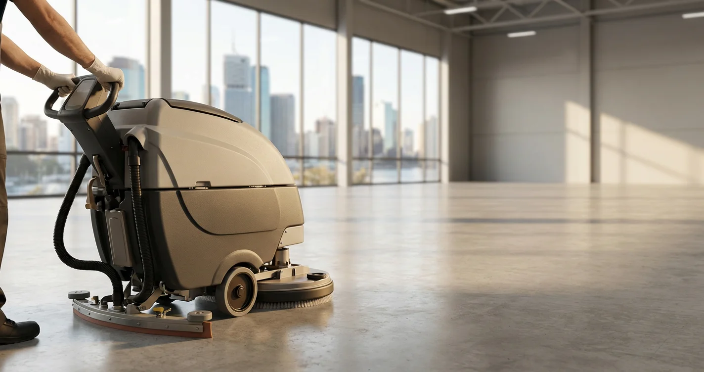 Over 3,000 sqm (warehouse, hospital, shopping centre): Ride-on scrubber. Covers large areas fast. Essential for post-construction cleanup in the new developments across Brendale, Yatala, and Ipswich.
