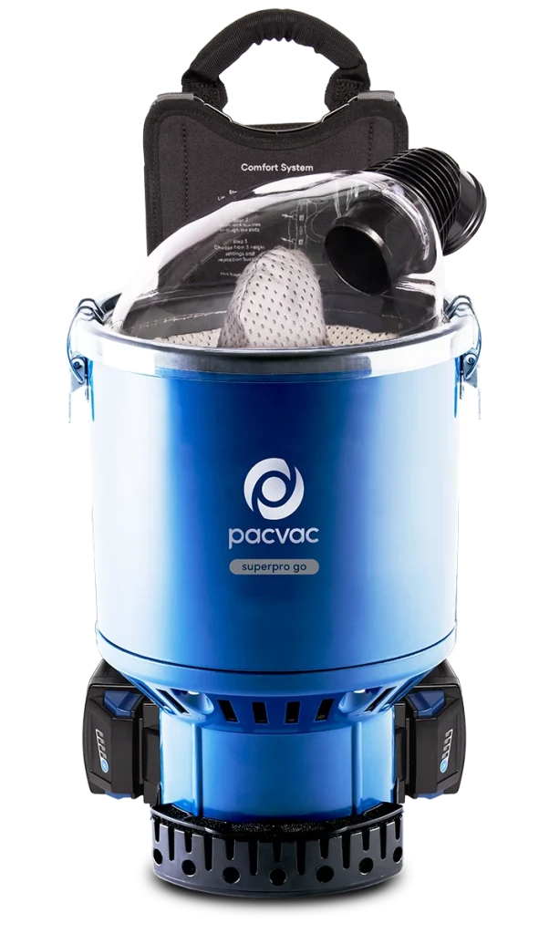 Experience the perfect blend of performance and comfort with the Pacvac Superpro Go. This cordless backpack vacuum is designed for the ultimate in cleaning freedom and efficiency. It delivers powerful suction, advanced filtration, and a premium ergonomic design, making it the go to choice for large scale professional cleaning.