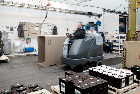Tackle the most demanding large scale cleaning tasks with the powerful and efficient Nilfisk SC6500. This ride on scrubber dryer is built for heavy duty applications, delivering hours of superior scrubbing and drying performance. It combines immense capacity and power with smart features to reduce the total cost of ownership.