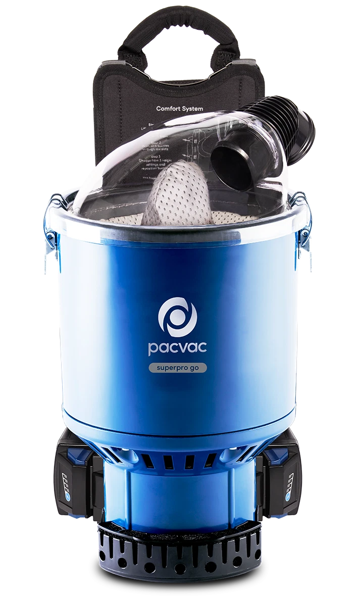 Experience the perfect blend of performance and comfort with the Pacvac Superpro Go. This cordless backpack vacuum is designed for the ultimate in cleaning freedom and efficiency. It delivers powerful suction, advanced filtration, and a premium ergonomic design, making it the go to choice for large scale professional cleaning.