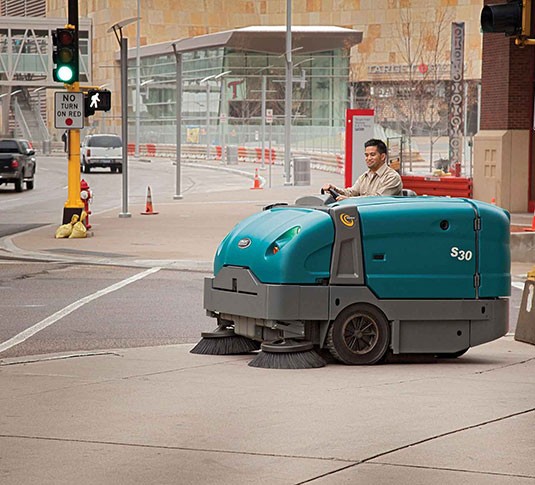 The S30 Ride-On Sweeper delivers unmatched performance in demanding industrial, commercial, and municipal environments. Built to handle everything from fine cement dust to heavy debris, the S30 features Tennant’s three-stage SweepMax® Plus dust control system, which maximizes efficiency and minimizes dust exposure. Optional HEPA filtration further improves indoor air quality and supports OSHA-compliant silica dust control. With operator-friendly controls, low-noise operation, and durable construction, the S30 provides consistent, high-quality cleaning results in both indoor and outdoor applications.