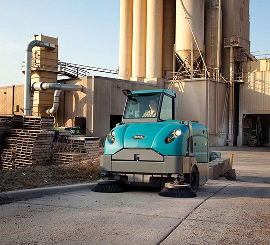 A productive compact ride-on sweeper designed for quiet, efficient cleaning in light- to medium-duty indoor and outdoor environments.