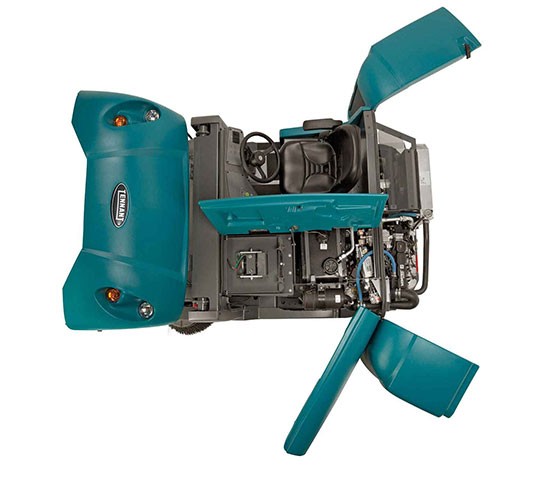 Large hopper and wide cleaning path minimize passes and cleaning time.