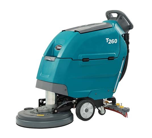The T260 Walk-Behind Floor Scrubber is engineered for simple, efficient and consistent cleaning performance in compact and congested spaces. Its 500 mm scrub head and intuitive push-button controls make daily operation quick and effortless, while the machine’s compact design offers excellent visibility for safe manoeuvring. Designed for commercial indoor environments, the T260 features easy access to tanks, straightforward maintenance touchpoints and a reliable sealed battery system that delivers up to 3 hours of run time. With strong down-pressure, effective water pickup and high-quality scrubbing, the T260 helps maintain a clean and professional facility appearance.