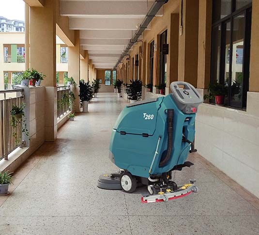 Battery-powered walk-behind scrubber for efficient cleaning in tight indoor spaces. Compact, quiet, and easy to maneuver, it delivers consistent results while keeping floors safe and dry.