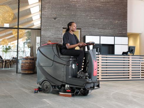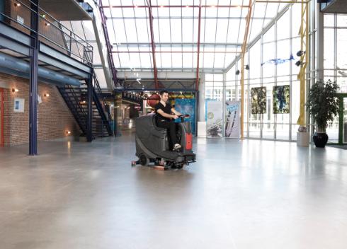 The Nilfisk AS710 R / AS850 R is a mid-sized ride-on scrubber dryer engineered for heavy-traffic environments. It’s ideal for indoor daily use in large commercial spaces, delivering efficient scrubbing and drying performance to maintain clean floors in high-demand settings.